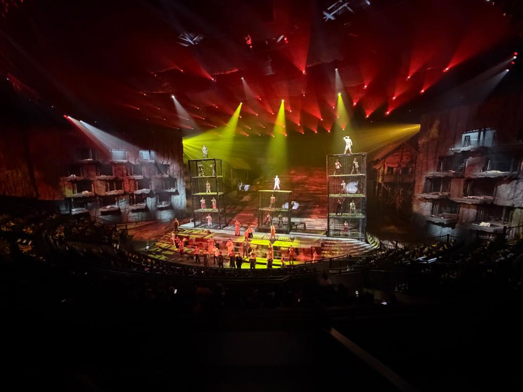 “《重庆·1949》打破代际隔阂,靠的是‘新意’。传统红色剧目受限于静态舞台,不易让年轻人产生情感共鸣。这正是我们决心突破传统模式的原因。”重庆1949大剧院副总经理周慧芳说,在科技助力下,该剧打造了独特的“5环”旋转舞台,构建出沉浸式剧场空间。随着观众席与舞台同步转动,梯坎、码头、监狱等场景无缝切换,重庆解放前夕的动人故事层层展开。