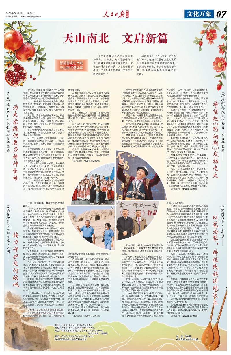 本版特推出“天山南北 文启新篇”专刊,邀请4位新疆当地文化界人士分享他们参与文化建设的故事,从亲历者的视角,带我们走进内涵丰富、百花齐放的新时代新疆文化花园。