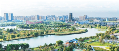 金秋时节,江苏省扬州市运河三湾生态文化公园呈现出一幅人与自然和谐共生的景象。孟德龙摄(人民图片)