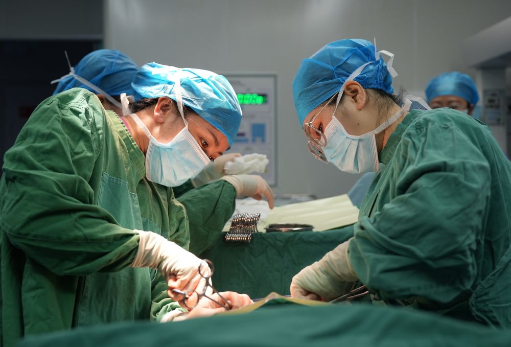 ↑ 2月16日,在广西柳州市融水苗族自治县人民医院,医护人员为患者做手术。新华社发(龙涛摄)