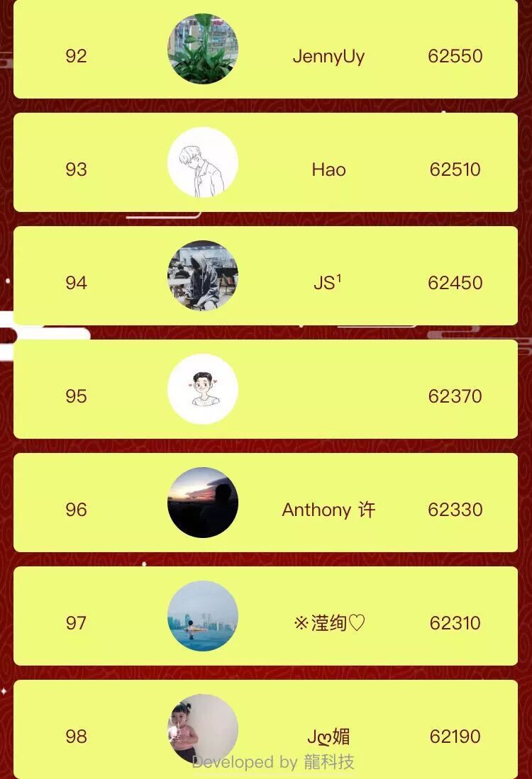 讲真,我也感同身受!!特别生气,怎么人家就那么好运气,轻易能摇到“状元插金花”,而本宝宝算起来也摇了上千次了吧,怎么就摇不到2000分呢?真的很令人生气啊,连200名都挤不进去